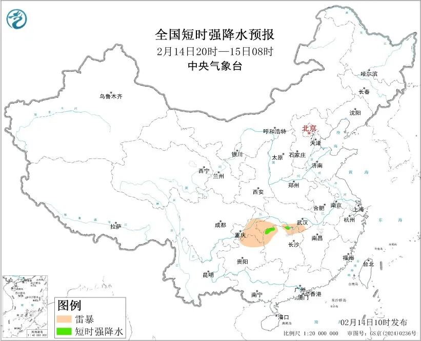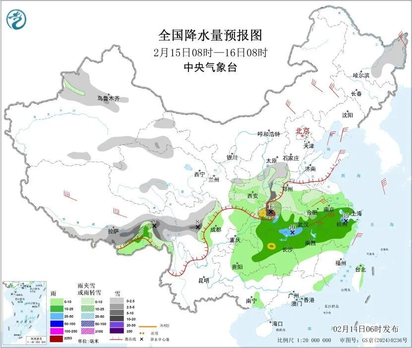 预报显示,14日至16日,西南地区东部、江汉、江淮、江南、华南等地有小到中雨,其中,15日,江南北部、江汉南部局地有大雨或暴雨,部分地区伴有雷电,湖北西部和湖南西部山区等地局地有冻雨,并且将是入春以来第一次较大范围的对流过程。