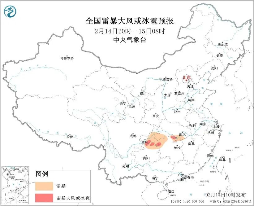 方翀指出,此次对流过程主要影响时段在14日夜间到15日,西南东部、江汉和江南北部等地将出现大范围雷暴天气,尤其在重庆南部、贵州和湖北中南部、湖南北部局地可能出现雷暴大风、冰雹或短时强降水等强对流天气。